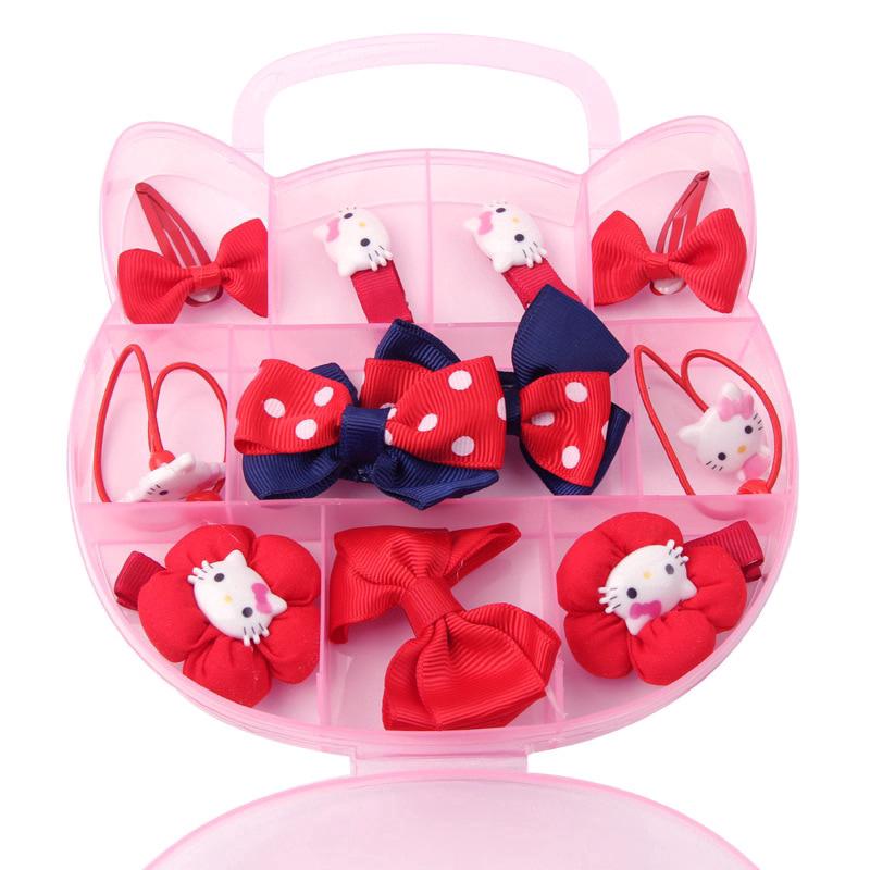 Baby Children Girls Hello Kitty Cat Ears Hair Clip Barrette Rubber Band Crown Hairgrip Tiara Headdress Accessories Gift Set Cute Baby Hair Accessories
